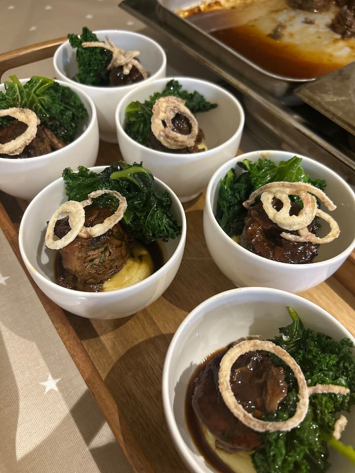 Choisissez entre deux présentations différentes : un buffet familial ou un repas à 3 plats, tous deux avec des saveurs variées.