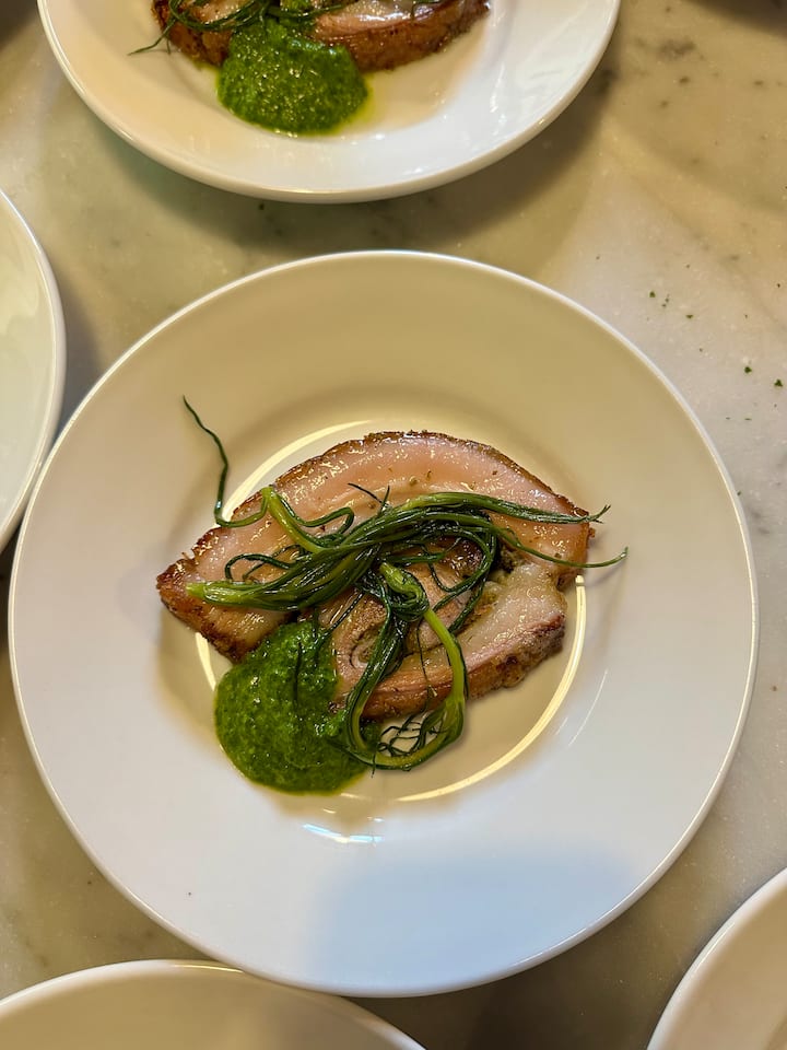 Ce menu de 4 plats combine saveurs italiennes et techniques françaises. Attendez-vous à des produits de saison et à des viandes durables.