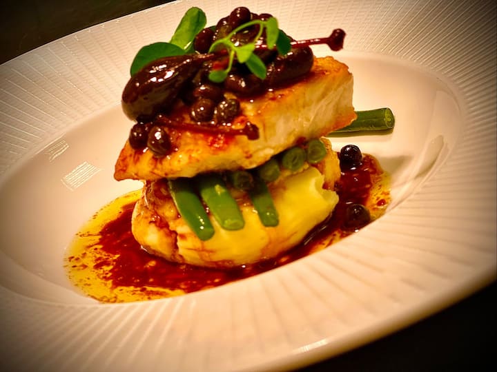Embarquez pour un voyage de 6 services à travers les saveurs méditerranéennes, asiatiques et latines. Découvrez des ingrédients et des histoires dans des plats en plusieurs couches, comme des huîtres au vinaigre de vin rouge, des perles de pommes de terre glacées au soja et des desserts aux agrumes tropicaux. Cette option comprend des accords mets et vins et des explications du chef sur chaque plat.