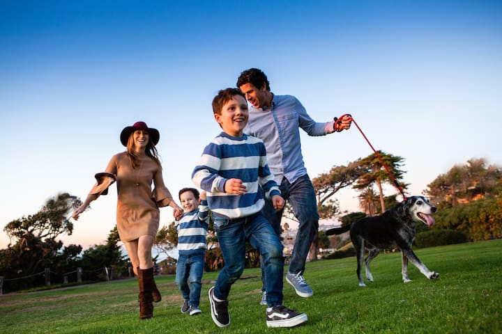 Une séance dynamique et joyeuse dans un lieu pittoresque avec de l'espace pour explorer et se détendre.