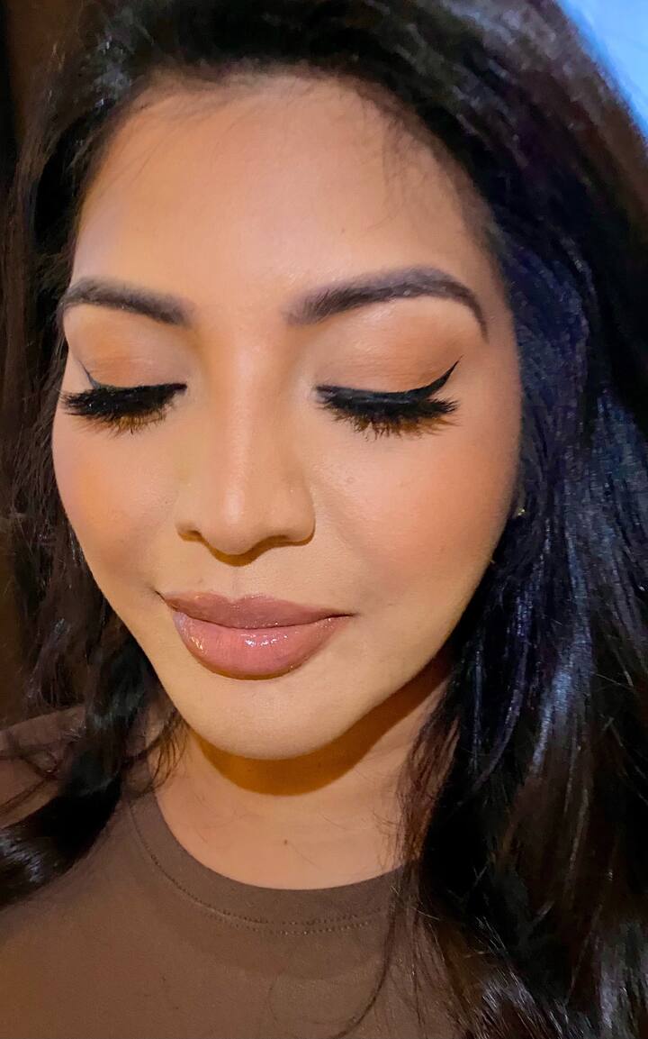 Profitez d'une application de maquillage audacieuse et soignée, avec une peau impeccable, des yeux définis et une touche de couleur.