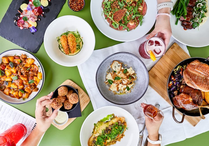 Profitez de cette offre élégante et décontractée avec 3 canapés de saison, 1 plat de pâtes et 1 plat principal servi à volonté.