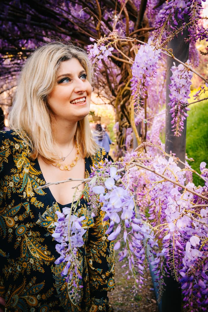 Une séance à la Villa Bardini, entourée de glycines printanières qui caractérisent le jardin, avec la vue sur Florence qui ajoute une touche magique.