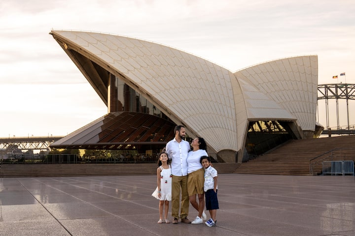 Profitez d'un mélange de photos prises sur le vif et posées à l'Opéra, au Harbour Bridge et à The Rocks.
