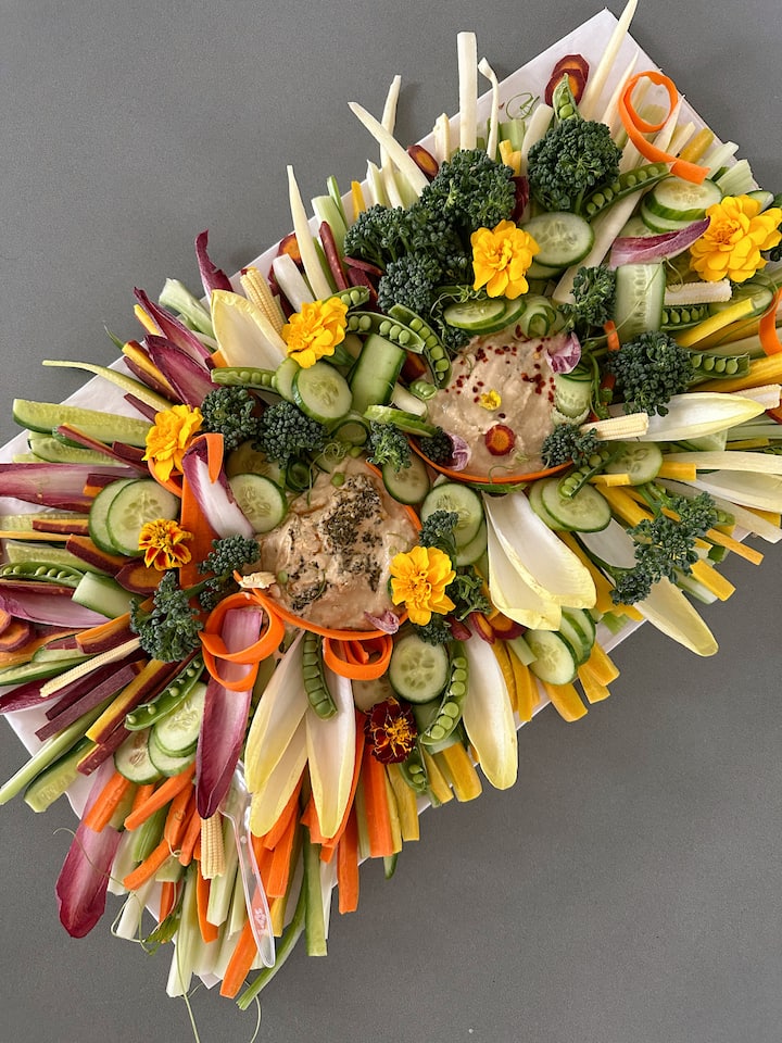 Comprend trois planches : une planche pour les légumes du jardin et les trempettes, une planche pour la burrata et une planche pour les crostinis. Uniquement des ingrédients biologiques et de saison soigneusement sélectionnés.