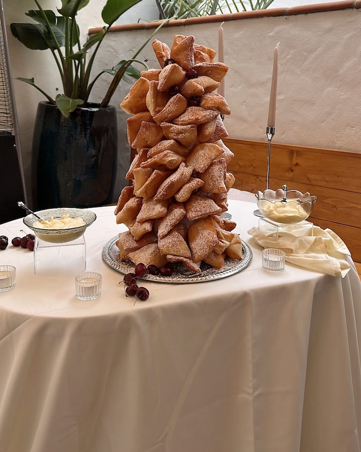 Tout juste sorti du four. Poudreux, moelleux, sucré et doux. Ces beignets sont soigneusement transformés en une pièce maîtresse où les voyageurs aiment se retrouver et prendre des photos tout en se faisant plaisir.
