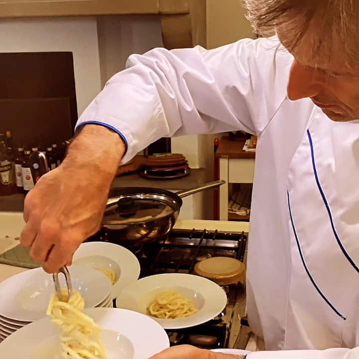 Profitez d'un dîner toscan composé de plats typiques et d'ingrédients locaux soigneusement sélectionnés par le chef Massimiliano.