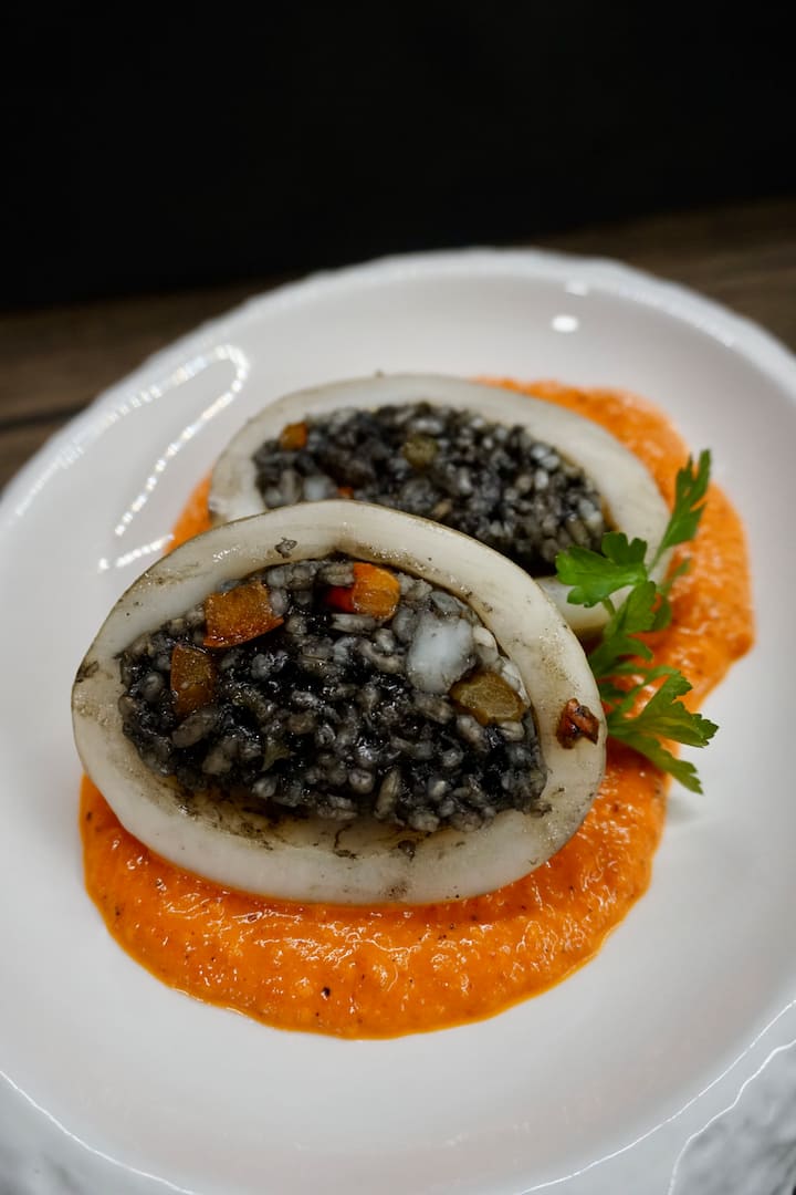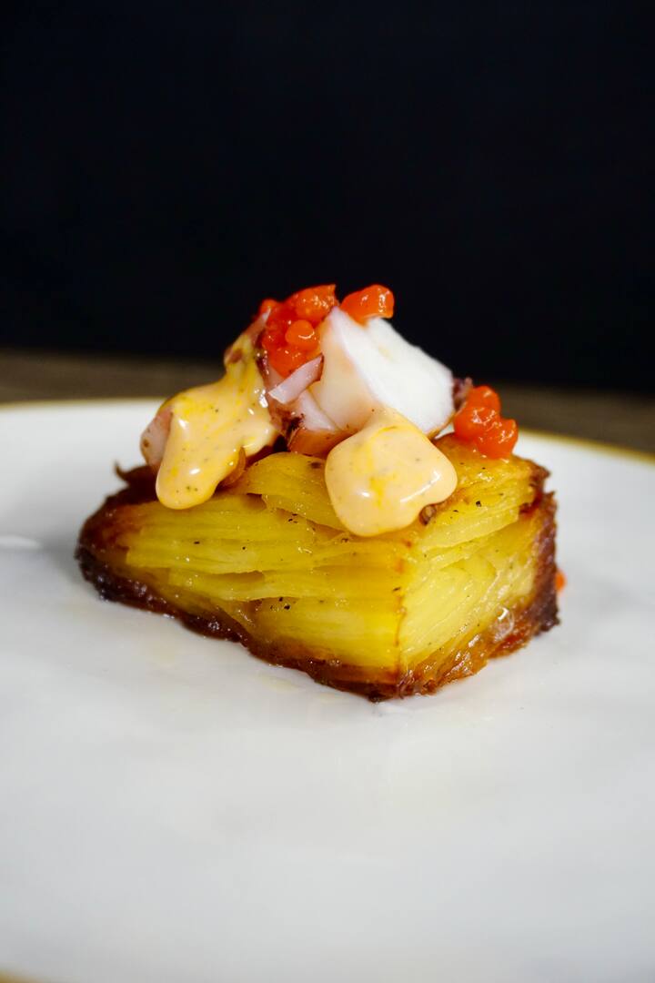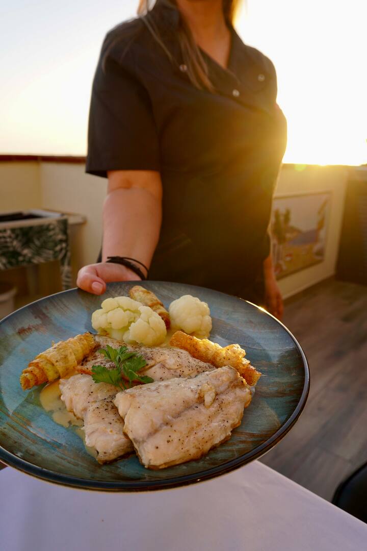 avec par exemple du filet de veau à la crème de betterave rouge, des noix de Saint-Jacques à la mousse de mojo verde, du secreto ibérique et de la crème catalane avec de la glace à la vanille et au safran. Cuisine raffinée – service privé.