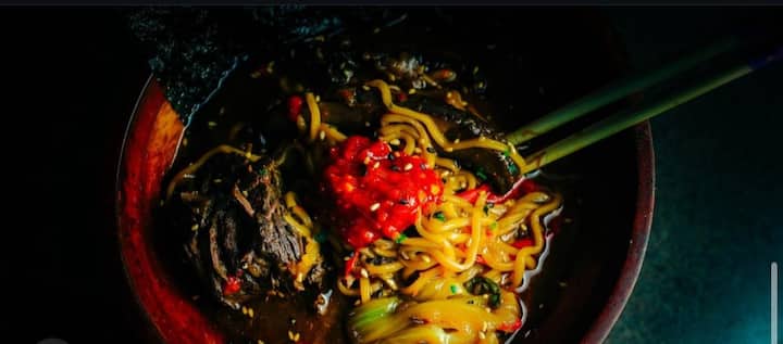 Un amuse-bouche pour commencer, suivi d'une salade fraîche, d'une entrée, de ramen aux côtes levées maison cuites lentement, d'un dessert et de collations pour plus tard.