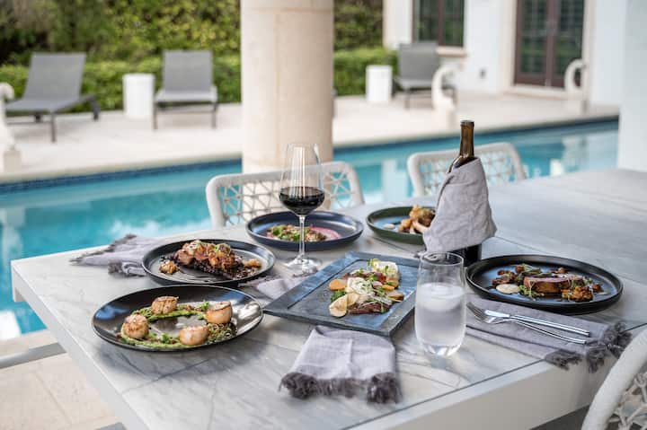 Nos chefs se rendront à votre domicile et prépareront 2 à 3 repas par jour pour votre groupe pendant toute la durée de votre séjour. Les restrictions alimentaires et les préférences de toute nature peuvent être satisfaites. Les chefs peuvent préparer un maximum de 3 jours par réservation. N'inclut pas le coût de l'épicerie qui peut être remboursé directement.