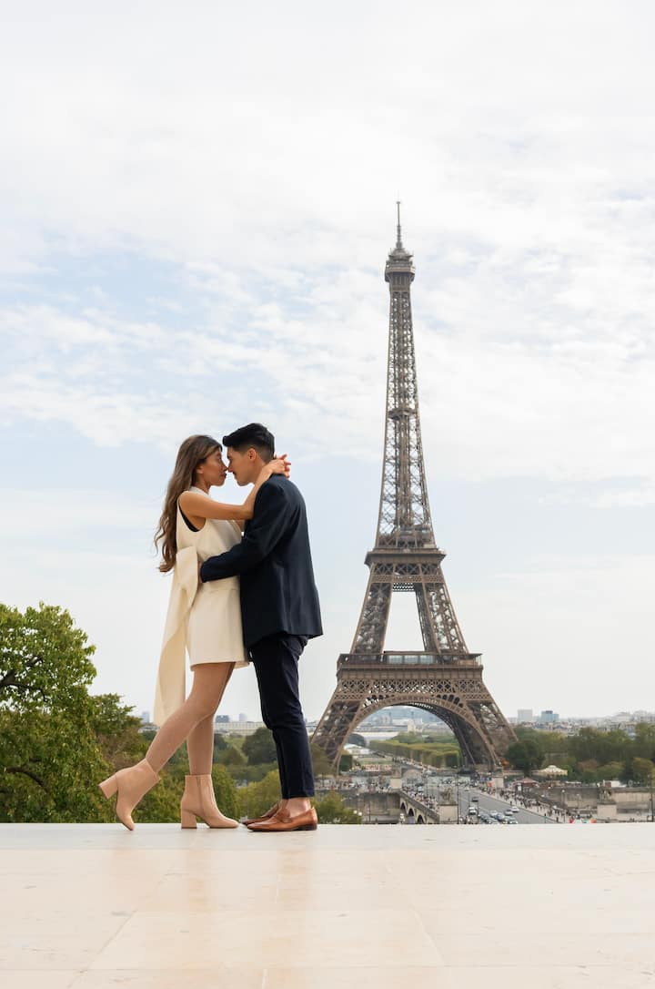Séance photo privée d'une heure (Tour Eiffel) 35 photos retouchées comprises. Les photos seront envoyées via un lien WeTransfer sous 4 jours.