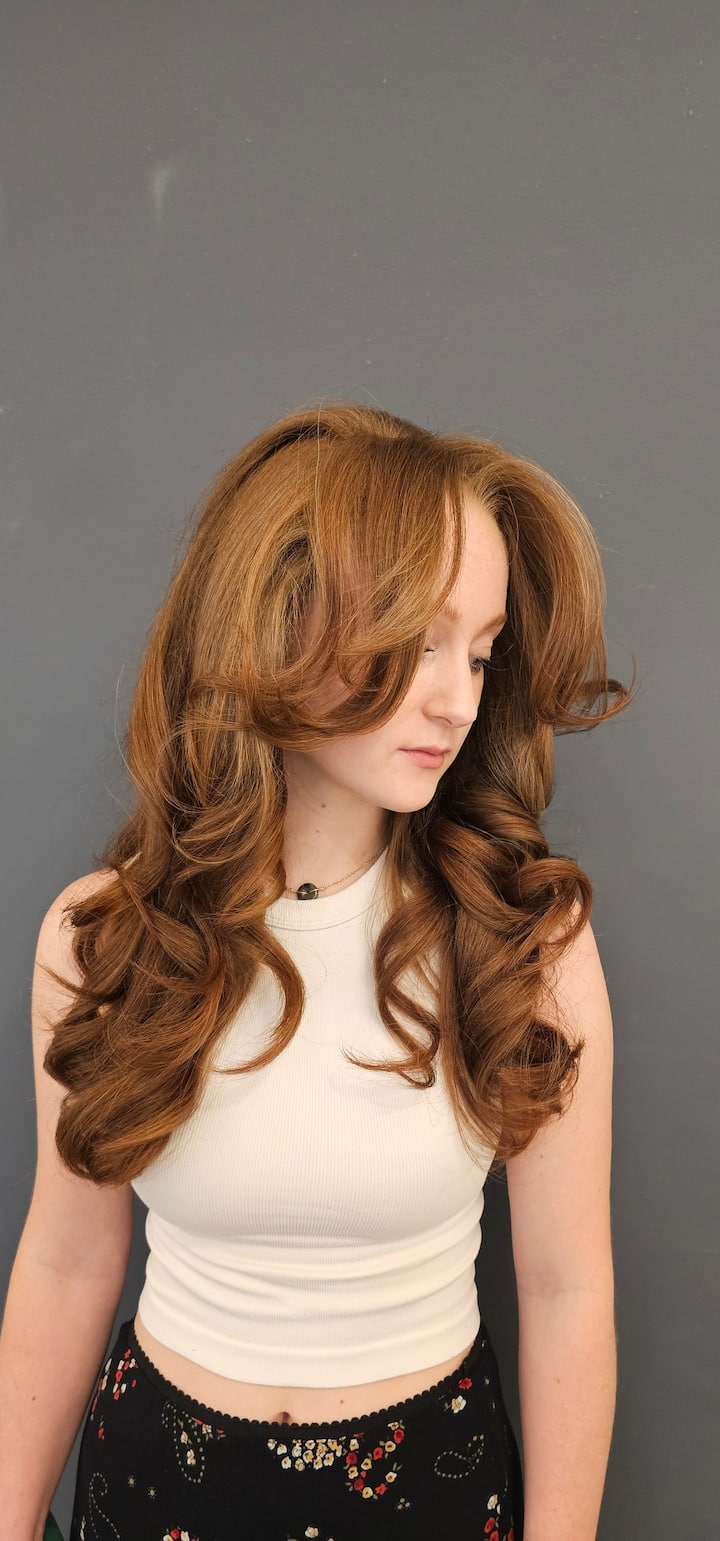 Un ensemble de brosses à boucler donne du corps, du volume et de l'élégance en un seul look soigné. Les cheveux sont lissés aux racines à l'aide d'une brosse ronde et d'un séchoir, puis coiffés pour créer des boucles douces et rebondissantes avec une finition soyeuse. Contrairement aux bigoudis en fer, cette technique ajoute du volume et du mouvement sans frisottis, pour un style durable et agréable au toucher. Parfait pour un look glamour sans effort : cheveux lisses en haut, volumineux au sommet et boucles fluides et pleines.