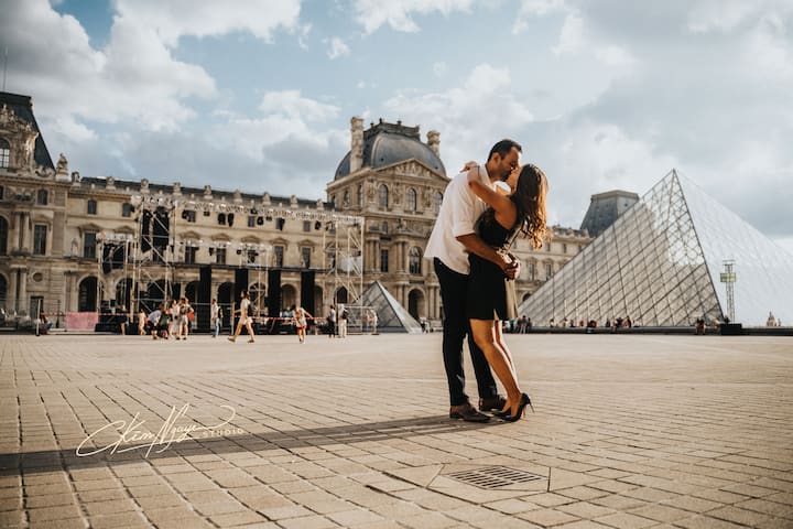 Je capture l'histoire d'amour d'un couple romantique lors d'une séance photo dans les lieux les plus emblématiques et romantiques de Paris.