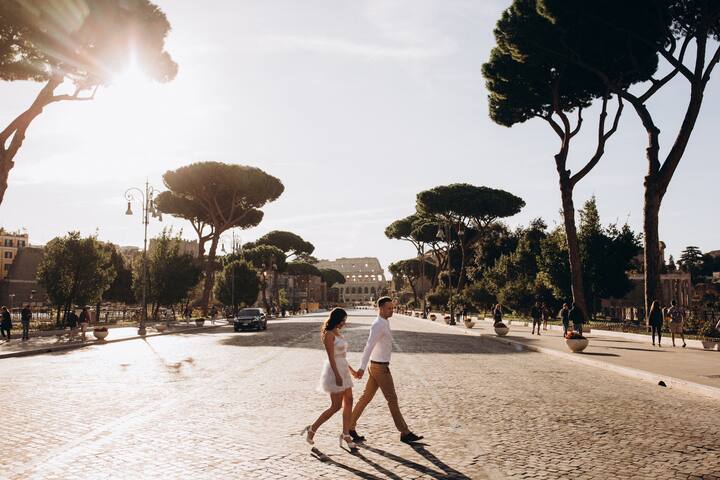 Immortalisez la magie de Rome avec une séance photo au lever et au coucher du soleil en une journée. Découvrez plus de 6 lieux époustouflants lors de séances à l'heure dorée, avec changements de tenue et poses guidées. Comprend plus de 100 photos retouchées, 3 tirages Polaroid et la livraison le lendemain. Parfait pour les demandes en mariage, les lunes de miel ou pour ceux qui veulent un souvenir cinématographique de leur séjour dans la Ville éternelle. Cette expérience premium est limitée à une réservation par jour pour une séance vraiment personnalisée.