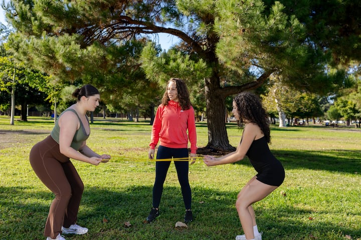 Pour ceux qui veulent reprendre une routine ou rester en forme pendant leur voyage, cette séance combine un entraînement fonctionnel, des exercices de résistance totale (TRX) et un entraînement en circuit en mettant l'accent sur la bonne forme. Les débutants peuvent s'attendre à des mouvements de poids corporel tels que des squats, des fentes et des planches. Les clients plus avancés peuvent utiliser des poids légers, des bandes de résistance ou un ballon BOSU, si l'espace le permet. Cette formation peut avoir lieu dans un gymnase de Studio City ou dans n'importe quel endroit, comme un parc local.