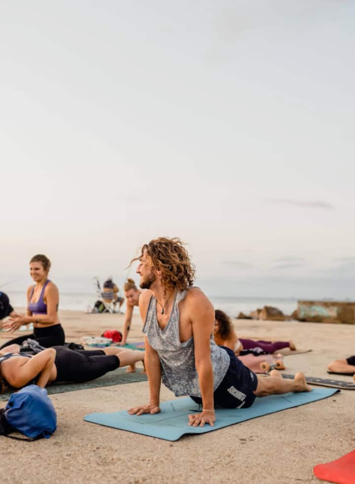 La routine matinale magique avec Bodhi qui se déroule tous les jours de semaine au lever du soleil depuis 5 ans. Yoga unique inspiré de Bodhi, saut dans la mer et café et croissant légendaire. Tapis inclus.