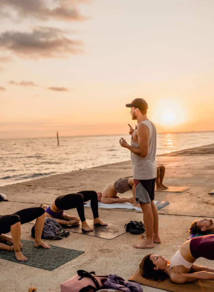 Yoga au lever du soleil en bord de mer avec Bodhi