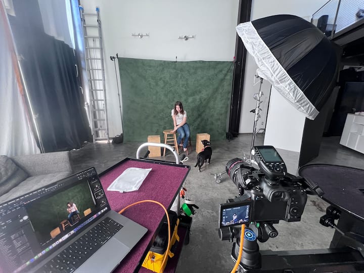 Participez à une séance dans un magnifique studio à la lumière du jour pour prendre des photos de personnes et/ou de familles.