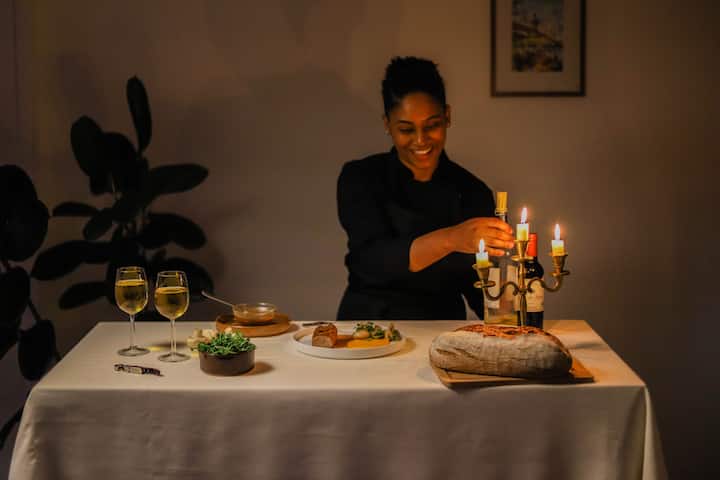 Ce menu réalisé maison et avec des produits de saison reflète l’univers créatif de la cheffe.