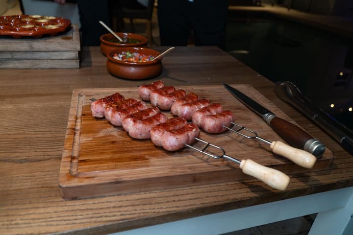 Commencez par un choripán classique, suivi d'une salade de pommes de terre fraîches et d'une salade verte. Savourez un steak grillé sur le feu qui met en valeur la saveur d'une parrillita argentine traditionnelle.