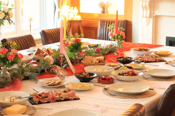 Idéal pour les rassemblements détendus, les célébrations et les repas de groupe, ce menu propose un éventail de plats conçus pour être partagés. La cuisine sur place, la mise en place de la table et la présentation sont incluses, ainsi que le nettoyage complet.