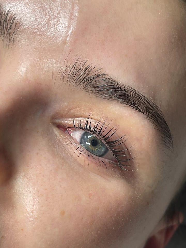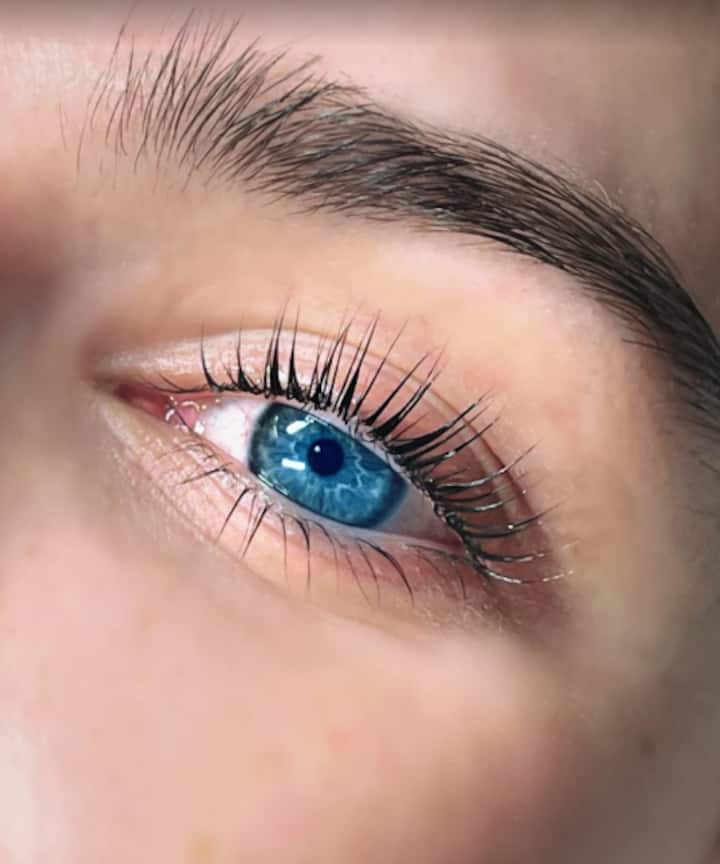Rehaussez vos cils naturels avec un rehaussement et une teinture à la kératine. Le résultat : des cils plus fournis et plus foncés, et un regard relevé et ouvert.