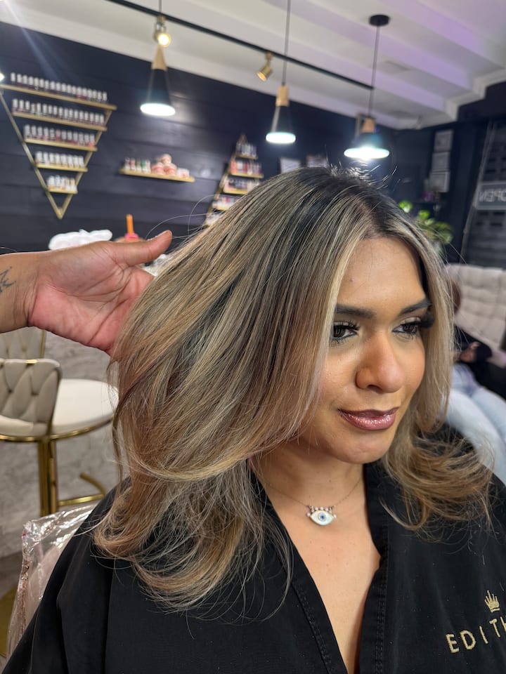 Obtenez un look dégradé ou un cadrage du visage avec une coupe de cheveux précise et moderne, personnalisée selon la forme et la longueur que vous souhaitez. Comprend la consultation et la finition professionnelle.