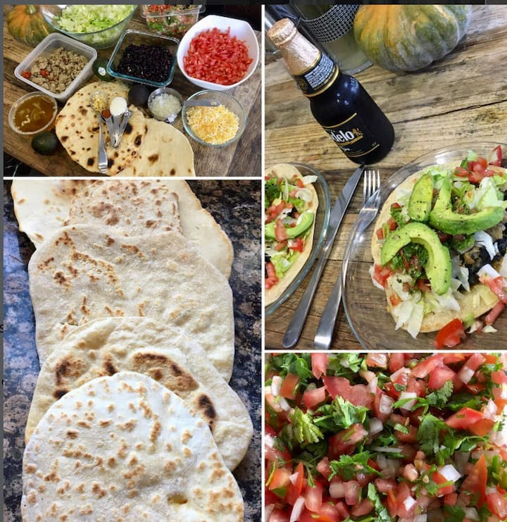 Choisissez parmi 2 à 3 protéines, des tortillas, des garnitures, des croustilles et de la salsa, et de l'eau aux agrumes. Les options de protéines comprennent du bœuf barbacoa cuit lentement, du poulet grillé mariné aux agrumes et de la patate douce végétalienne et des haricots noirs.