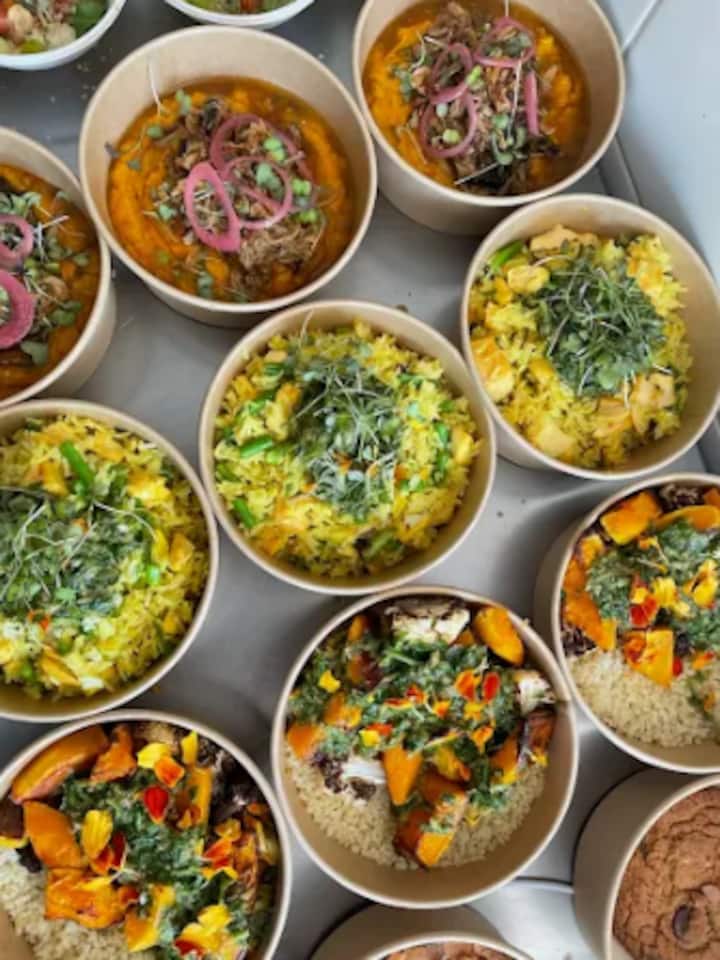 Le déjeuner qui change tout. Chaque box préparée le matin : plat chaud caribéen (crème de riz coco poulet ou légumes boucanés sauce herbes option végé), salade colorée, dessert maison (tourment d'amour ananas ou mont blanc coco). Produits frais, épices des Antilles. Sans gluten sur demande. Min. 4 pers. Livraison bureau ou domicile Paris + petite couronne.