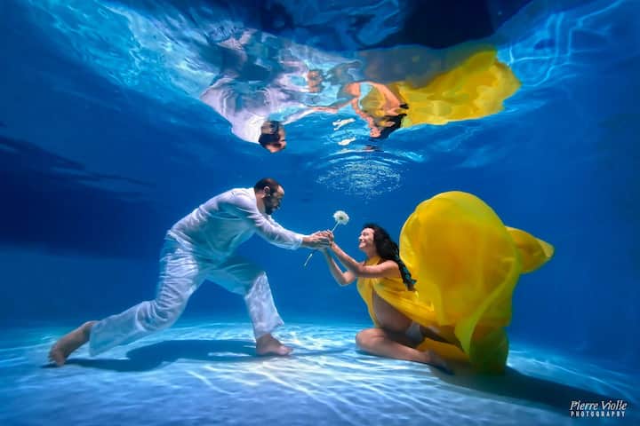 Je transforme la piscine de votre logement en un véritable studio photo. Nous prenons des portraits artistiques au-dessus et au-dessous de l'eau. Un souvenir parfait de votre séjour sur la Riviera Maya.