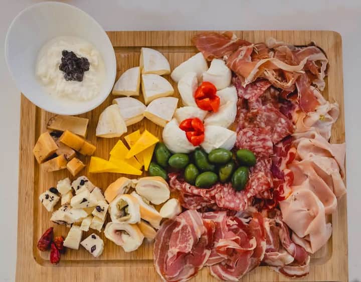 1) planche de charcuterie et de fromages