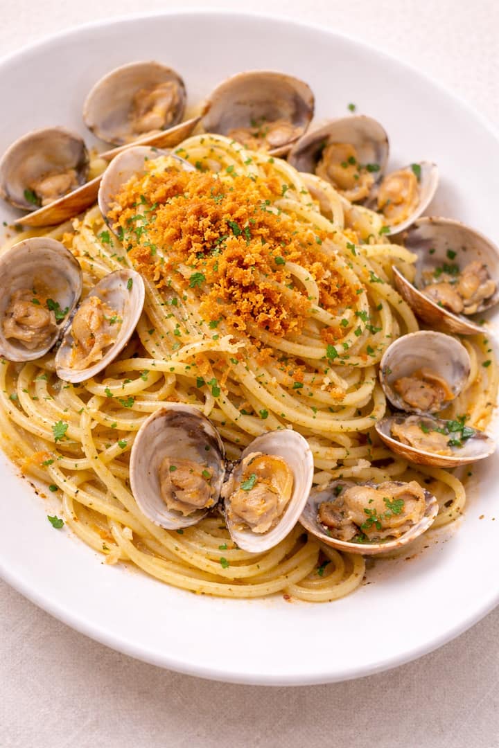 2) spaghettis aux palourdes et poutargue