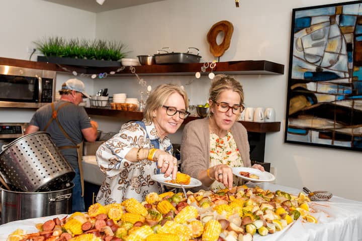 Choisissez parmi notre menu côtier, une expérience de dîner pour un maximum de 10 personnes. Tout est préparé et cuit sur place et devant vous. Choisissez entre un bouillon traditionnel du Low Country, une authentique paella espagnole ou un savoureux poulet au marsala. Chaque plat est servi traditionnellement sur la table ou à la familiale dans la poêle où il a été cuit. Ce que nous faisons, c'est de la cuisine de chef, nous n'arriverons pas en blouse blanche et la porcelaine décadente restera cachée. Le partage est le mot clé, tant pour les repas que pour les conversations!
