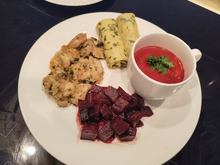 Profitez d'un déjeuner de style buffet adapté aux grands groupes, avec une variété de plats.