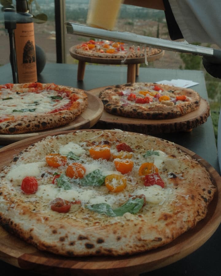 Parfait pour les événements intimes comptant jusqu'à 34 invités, ce forfait propose des pizzas en formule buffet, fraîchement préparées sur place par un chef. Un four à bois de table, un présentoir professionnel, des plateaux de service et tout l'équipement essentiel sont fournis pour une présentation sans faille. Il y a 4 saveurs de pizza et 1 salade.