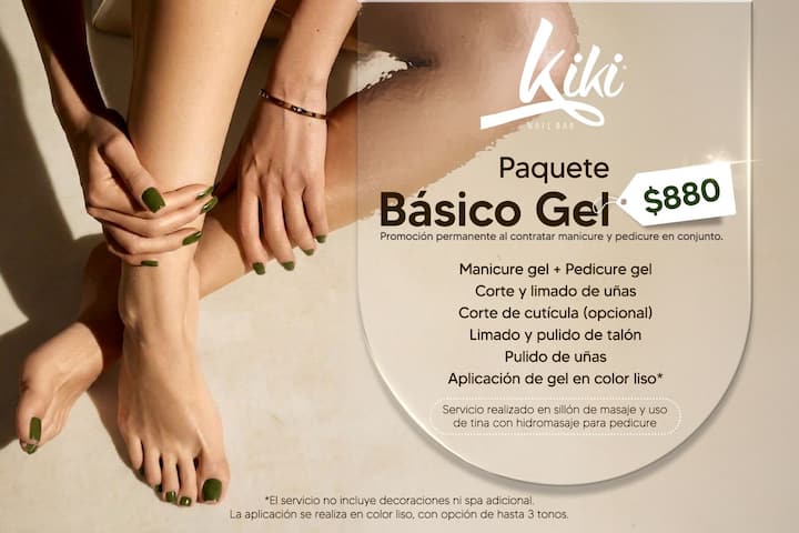 Ce forfait comprend une manucure et une pédicure au gel, avec préparation et finition durable. Comprend la coupe et le limage des ongles, le soin spécialisé des cuticules, le polissage conventionnel et le polissage du talon, ainsi que l’application de gel de couleur unie (jusqu’à trois teintes unies). Ne comprend pas les décorations.