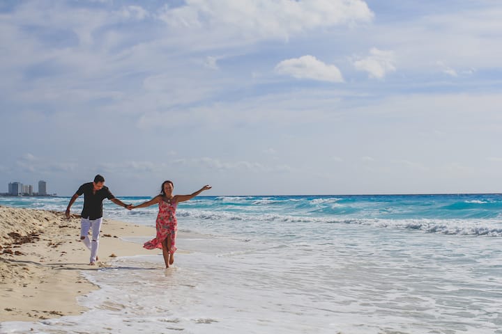 Séance photo professionnelle près du temple maya du Scorpion et sur la plage