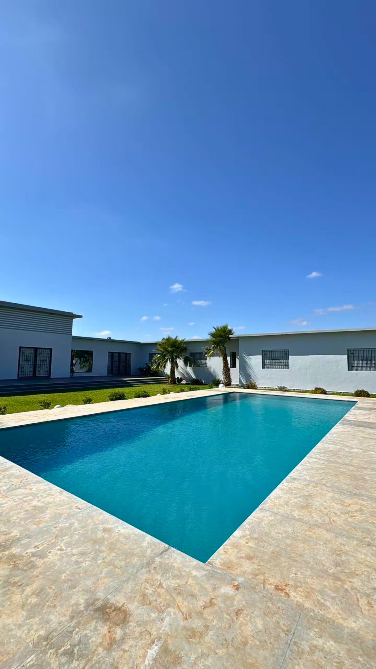 Très belle maison de campagne de plain-pied construite en pierre et matériaux naturels. En totale intimité, profitez d'une piscine privée et d'une terrasse entourée d'oliviers. Située à proximité de Settat, de la rivière Oum Errabiâ, de la Kasba de Boualaouan et à moins de 1h10 de la mer, elle est parfaite pour une escapade familiale paisible à la campagne. À 10 min, le village d'Oulad-Said offre toutes les commodités.