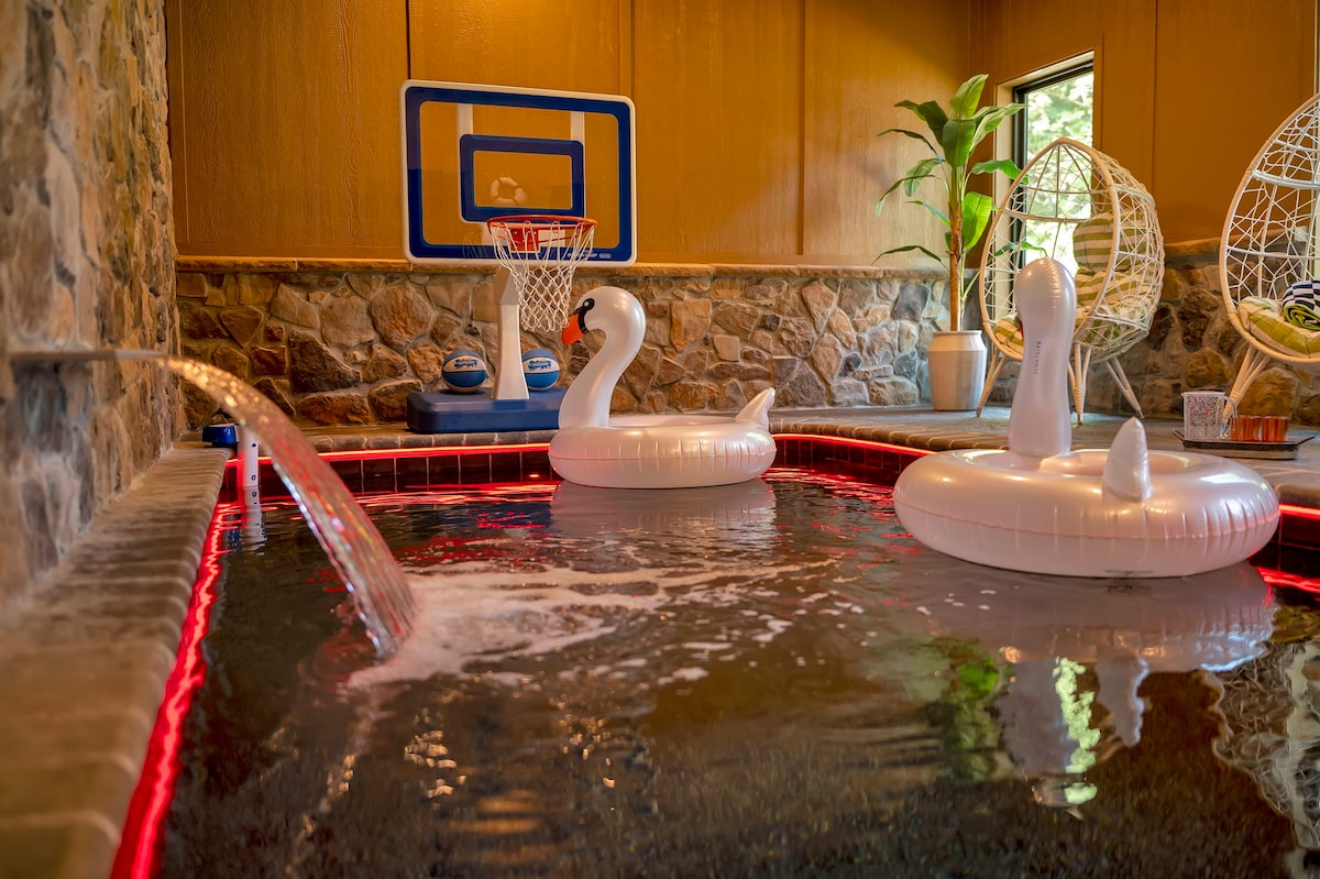 Piscine intérieure à 83 °, foyer, salle de jeux, jacuzzi