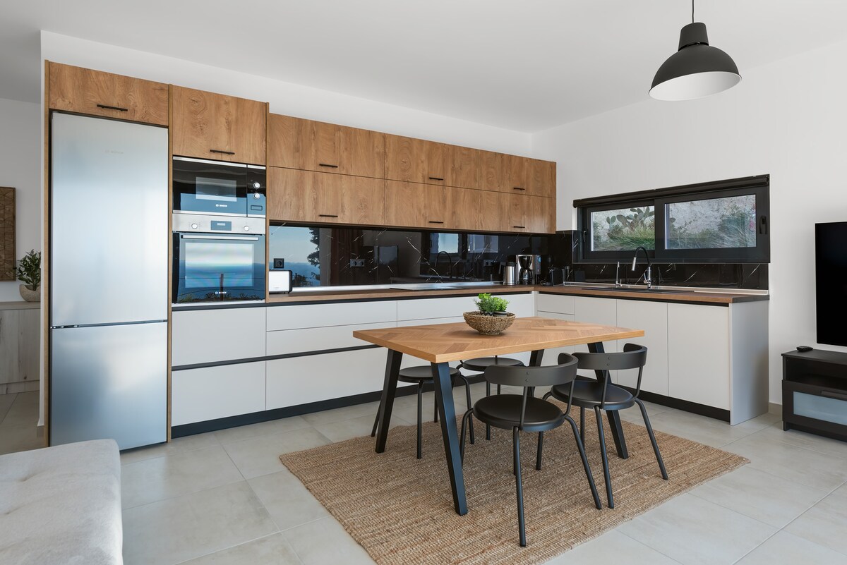 Appartement récemment construit, ensoleillé, dans un immeuble de 2 appartements indépendants, vue magnifique sur la mer avec lever de soleil panoramique sur le meilleur côté de l'île, à seulement 10 minutes en voiture du centre-ville et de la vieille ville et à 3-5 minutes des magnifiques plages de Santa Marina, Sunwing, Kallitheasprings, très proche des grands supermarchés, restaurants, pharmacie, station-service, terrain de sport, marché populaire, etc. Idéal pour 4 personnes, familles, couples, amis.