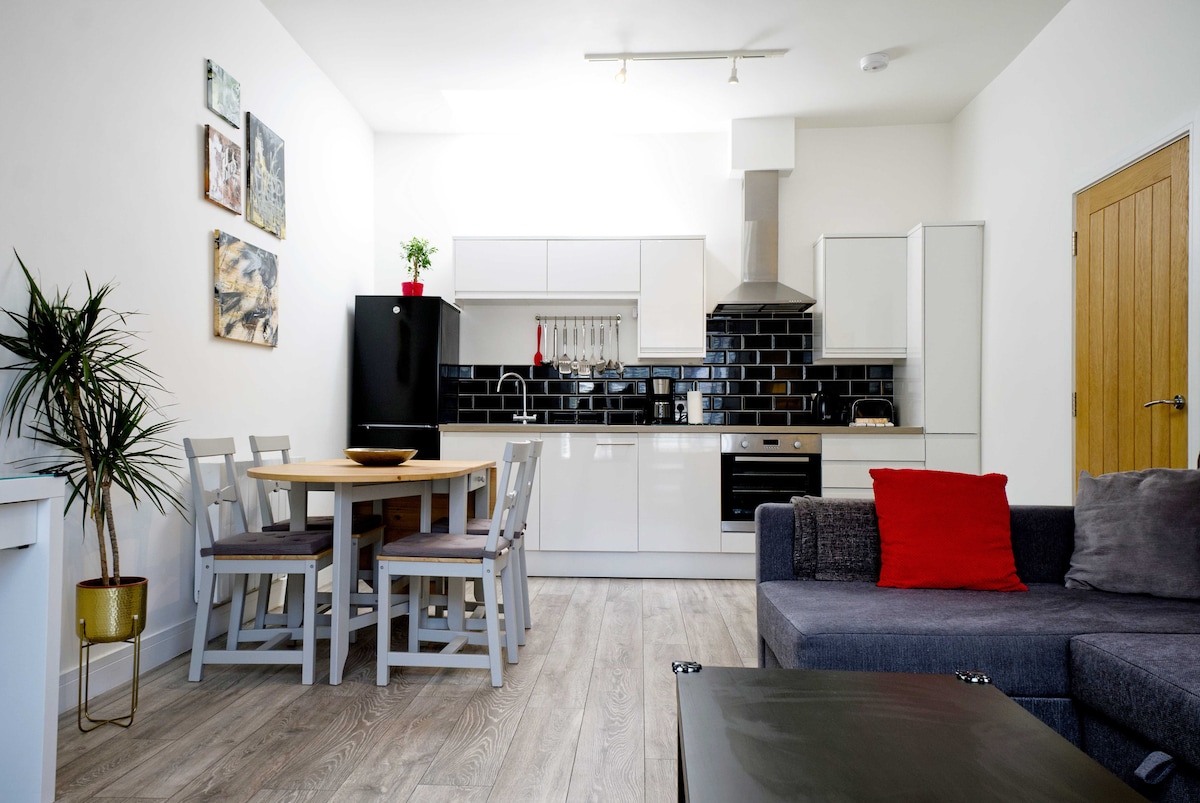 Appartement contemporain et coloré récemment rénové et meublé par une famille créative. Cuisine/salle de séjour ouverte avec tous les équipements que vous attendez. La salle d'étude dispose d'un bureau intégré et est équipée de jeux de société vintage. Et une chambre relaxante et lumineuse. Idéalement situé, l'appartement Isley offre un accès rapide aux attractions, aux sites touristiques, aux restaurants, aux pubs et aux commerces juste devant la porte d'entrée. Il se trouve à dix minutes à pied de la plage, le long de l'historique Shanklin Chine victorien.