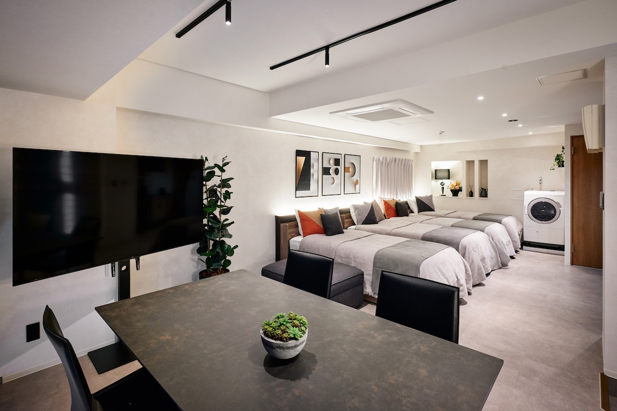 Ce studio entièrement rénové au cœur de Shibuya offre un séjour raffiné et spacieux. Conçu dans des tons de terre apaisants, l'espace de 37 ㎡ comprend quatre lits simples, idéal pour les groupes et les familles. Excellent accès : à 8 minutes à pied de la gare JR Shibuya (sortie Hachiko), vous aurez un accès instantané aux magasins, à la gastronomie, à l'art et à la vie nocturne. Cet emplacement est le point de départ idéal pour explorer Tokyo.
