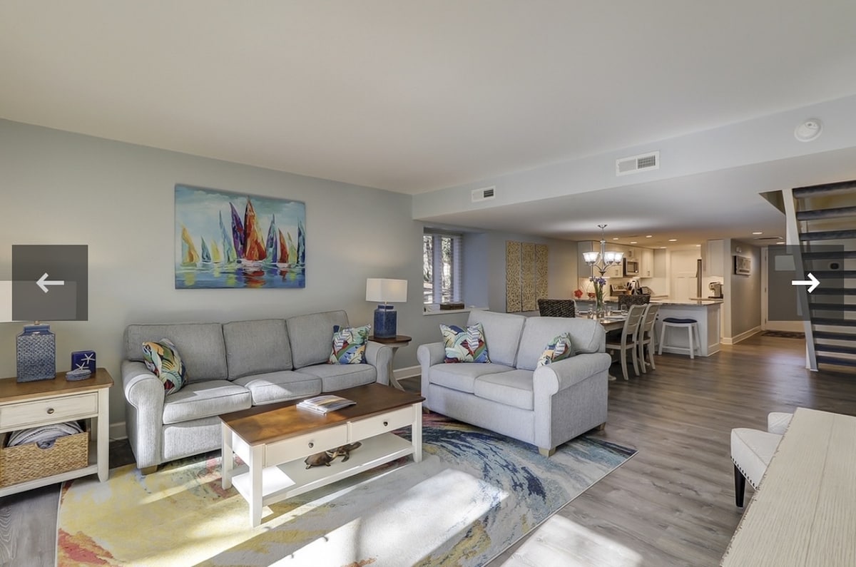 Bienvenue au 1201 Shipmaster ! Situé dans la belle communauté fermée de Shipyard Plantation à l'extrémité sud de l'île, avec du tennis, du pickleball, du golf et bien sûr de la plage. Profitez également de la piscine partagée pour le complexe. À moins de 1 mile de la célèbre région de Coligny - cet endroit est proche de toute l'action ! Un animal de compagnie de moins de 30 lb est autorisé. Les animaux de compagnie DOIVENT être inclus dans la réservation lors de la réservation. Les animaux de compagnie ne sont pas autorisés sur les meubles. La violation de cette politique entraînera des frais de 250 $ en plus des frais pour les animaux.