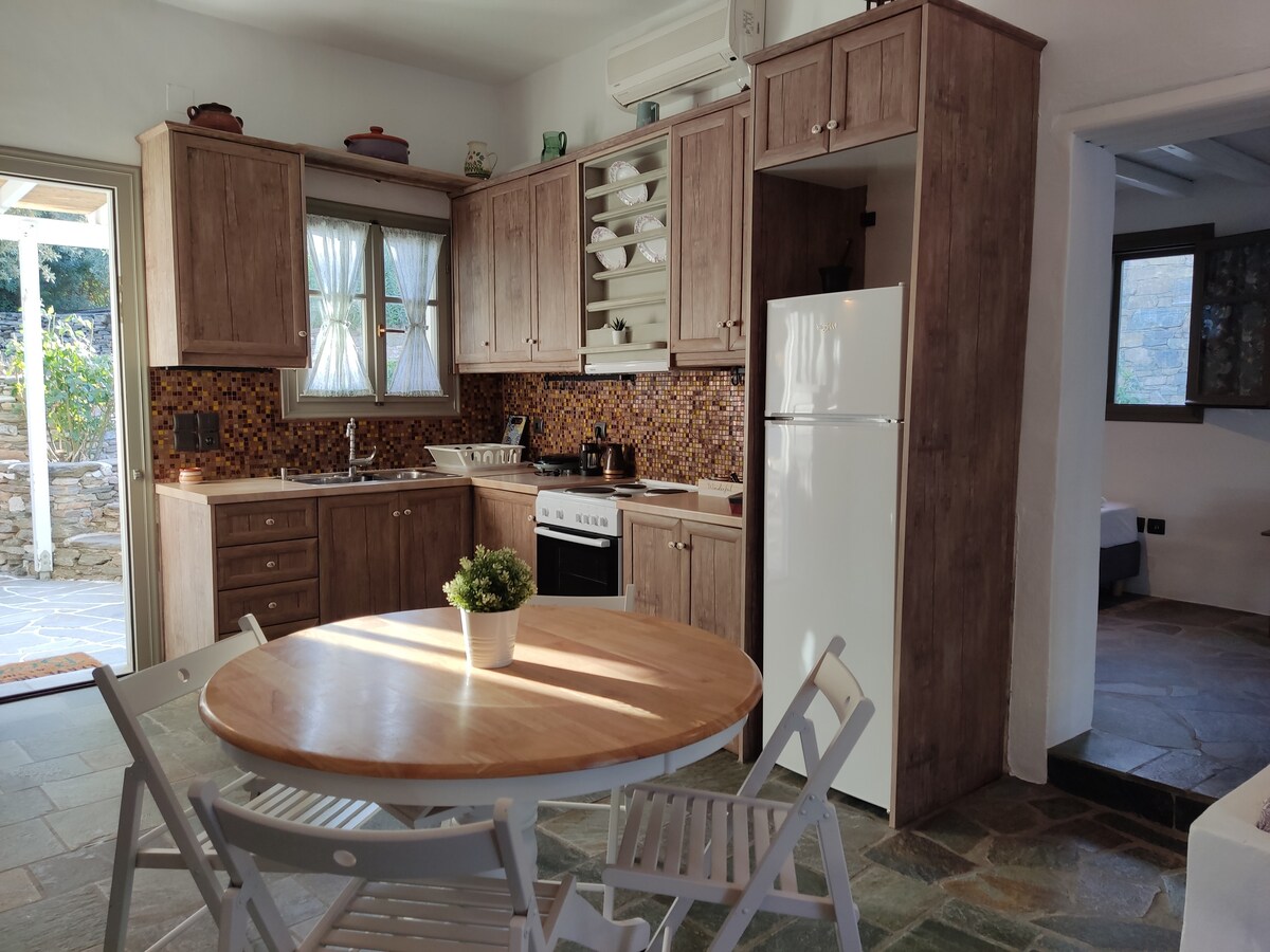 C'est une maison de campagne dans un endroit très calme et paisible sur le côté nord-est de l'île. Vous avez une vue imprenable sur la mer Égée, ce qui vous donne la possibilité de vous détendre et de vous reposer pendant vos vacances. Il y a une chambre principale avec un grand lit avec un matelas Grecostrom Bodytopia Series et deux lits simples dans l'espace de repos qui est partagé avec la cuisine. Il s'agit également d'une cuisine entièrement équipée et d'une salle de bain, ce qui vous donnera la possibilité de profiter de vos vacances à votre rythme.
