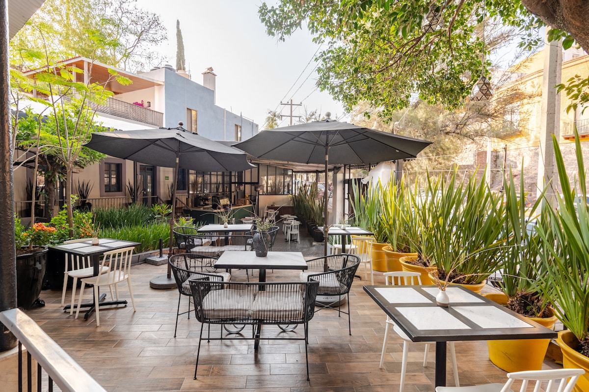 Cet endroit bénéficie d'un emplacement stratégique : il vous sera très facile de planifier votre visite !! La Casa Calixto est située à un point stratégique de la ville, à quelques pas de l'allée du Beso et de la Plaza de los Ángeles. À seulement 6 minutes du théâtre Juárez et du marché Hidalgo ; à quelques pas de toutes sortes de services (nourriture, transports en commun, magasins en libre-service, banques, musées, places, etc.) C'est une maison assez spacieuse où vous pourrez profiter de votre visite à Guanajuato, en compagnie de toute votre famille !