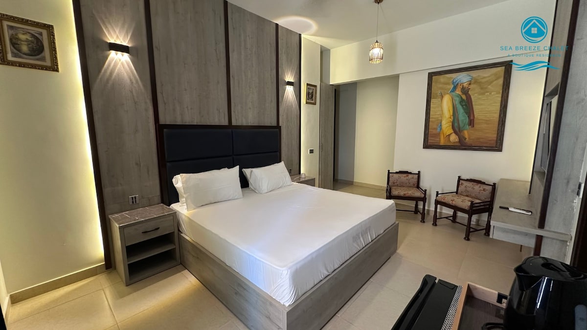Stay at an exclusive private club in DHA Phase 6, Karachi. Enjoy a private lounge, housekeeping and room service. Access pool, gym, a walking track, and sports facilities for a minimal fee. Gated entry, 24/7 security, and a prime location ensure a seamless stay. Single person room available with a king sized bed.