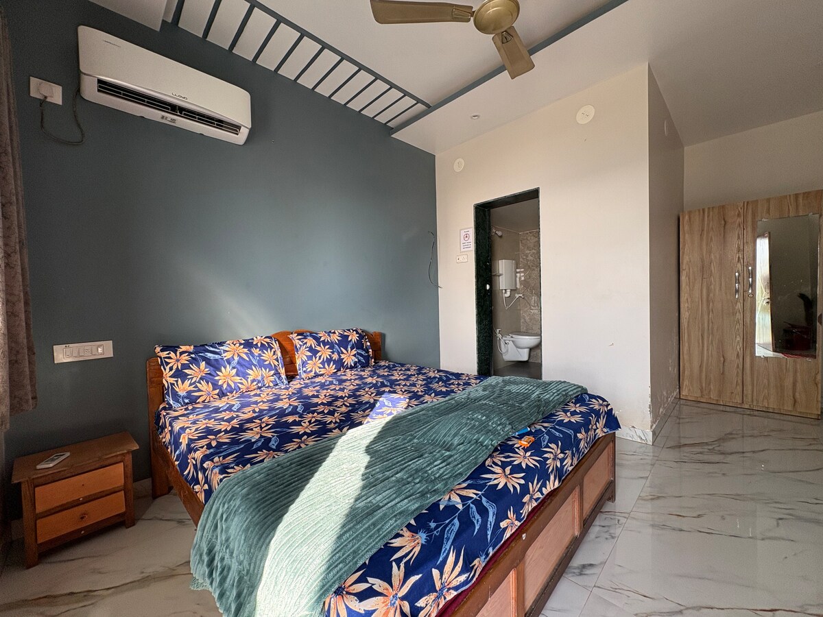 Bienvenue à Algaari House 2 – une retraite d'artiste colorée 1BHK au bord de la rivière Chapora à Siolim. Conçu avec chaleur et créativité, il est parfait pour 2 voyageurs (3e voyageur 1 000 ₹ / nuit). Animaux acceptés également (séjour de 1 000 ₹ / 7 jours). Profitez d'une vue paisible sur la rivière, d'intérieurs animés et de tout le charme du nord de Goa. Idéal pour les couples, les créatifs ou les voyageurs en solo à la recherche d'un séjour émouvant. Ne demandez pas de réductions.