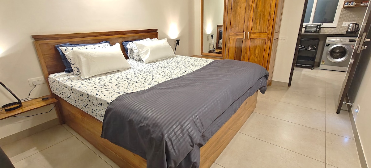 Quelques avantages de la propriété Emplacement : - • Situé en plein cœur de Goa (Calangute) où se trouve la célèbre vie nocturne de Goa. • À 5 minutes en voiture de Baga Beach et de Tito's Lane. Équipements de la propriété : - • Sécurité 24h/24 et 7j/7 • 2 ascenseurs • 2 piscines avec jacuzzi • Salle de sport avec hammam et sauna. • Salle de jeux. • Jardin paysager. À propos de la suite : - • Adapté aux enfants • Cuisine entièrement fonctionnelle. • Alimentation de secours 24h/24 et 7j/7 • Salon spacieux. • Chambre de luxe. Équipements de la suite : - • Machine à laver ! • 2 téléviseurs XL ! • Wi-Fi haut débit ! • Espace de travail personnel !