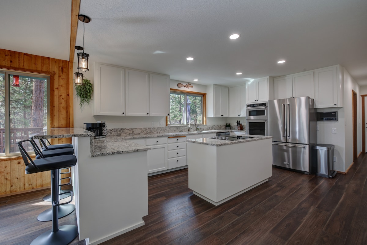 Paradis classique de Pine Meadow ! 3 chambres et une ADU supplémentaire, composée d'un lit King Size, de deux lits Queen Size et de deux lits jumeaux. Vous allez adorer toute la lumière naturelle et les portes-fenêtres juste à côté du séjour. Cuisine entièrement équipée avec îlot. La chambre principale dispose d'une vue sur la montagne, d'une douche en grès et d'une baignoire à remous à l'étage. Il y a également un ADU privé au-dessus du garage que les invités sont libres d'utiliser. Profitez de vous asseoir sur le porche avec votre boisson préférée en famille ou entre amis.
