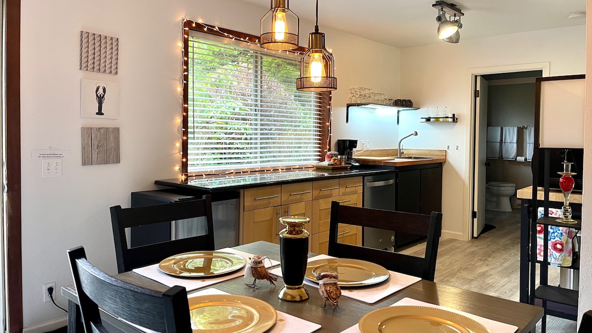 Ce chalet côtier conçu avec art offre un espace exaltant et paisible pour se détendre et explorer. Situé à distance de marche de belles plages, de la coopérative locale et de plusieurs restaurants et bars, ce chalet unique offre l'escapade parfaite pour ceux qui veulent ralentir le rythme et se perdre dans la beauté côtière époustouflante. Nous accueillons chaleureusement les gens de tous les horizons et de tous les horizons, pour venir profiter d'un coin de paradis artistique le long de la côte sud de l'Oregon. Animaux de compagnie 15 $ chacun